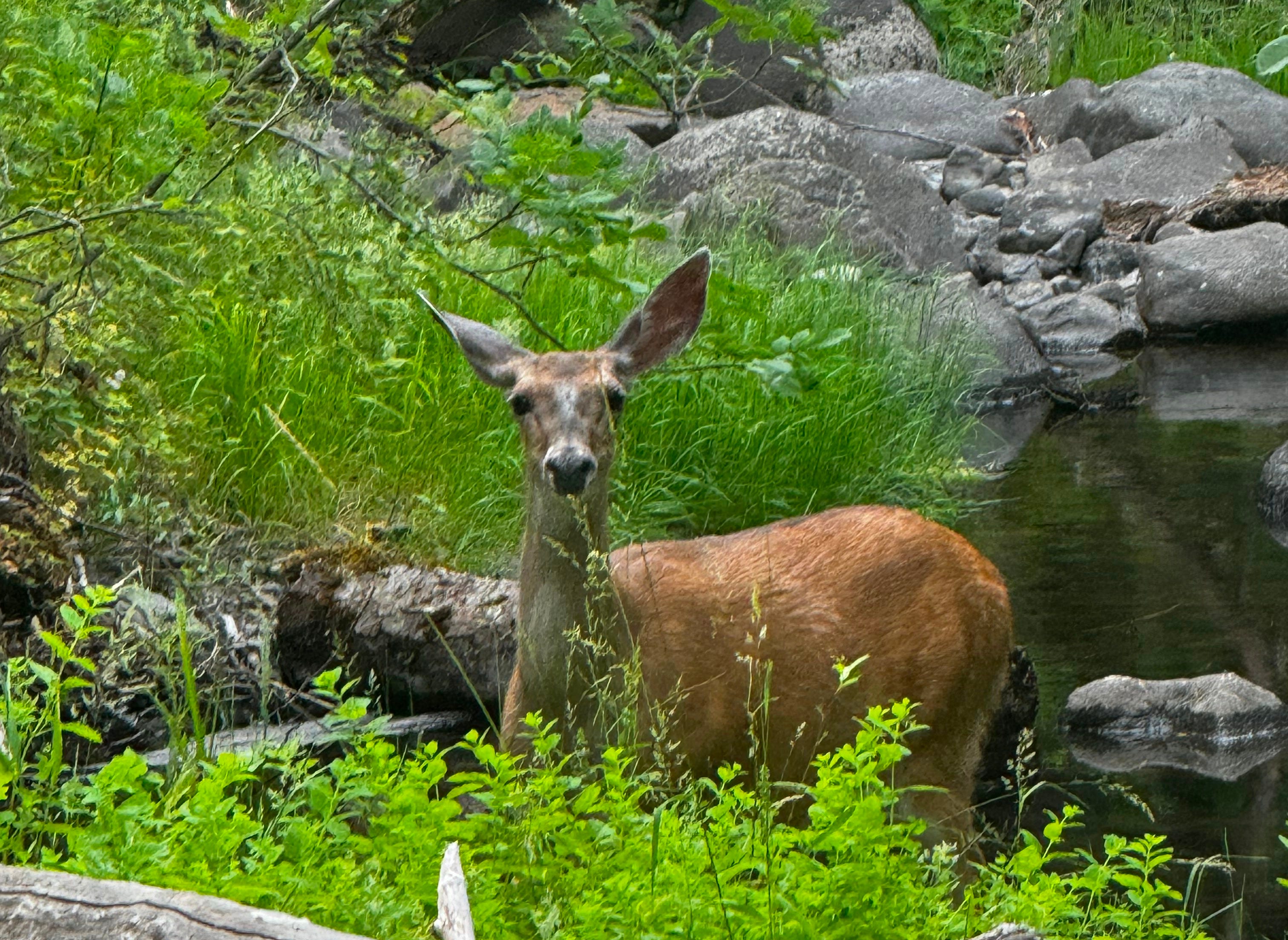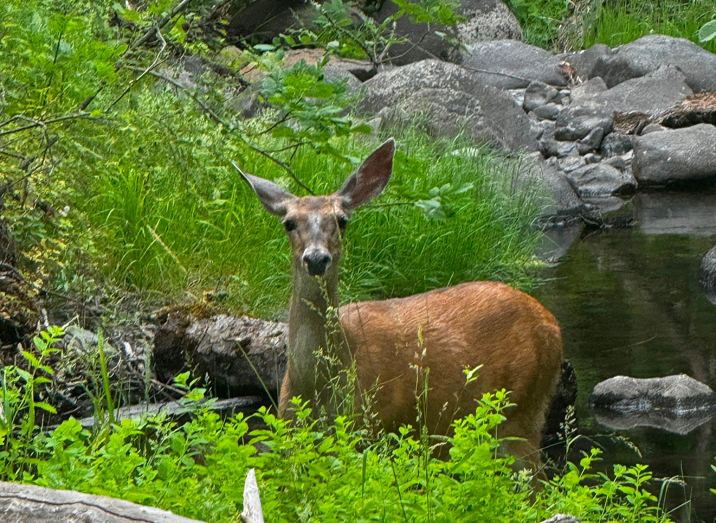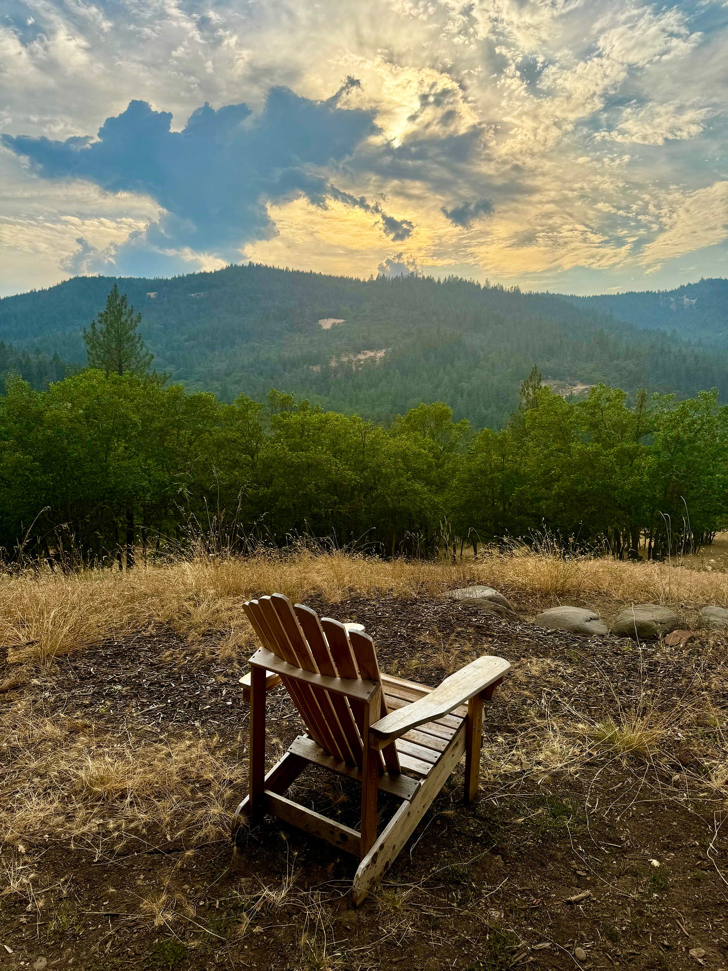 We finally stopped, and Scott cut the engine. Once he did, it felt like switching to the nature channel on TV. A soft breeze now became audible as it meandered through the leaves, birds chiming with gentle conversation. After so much motion, it felt good to finally arrive, knowing this would be my resting place for a week. I stood still, feeling the ground beneath my feet. The vastness of the landscape lifted something in me. From my vantage point I could see the land fall away in a wide valley below, rising again into mountains beyond the creek.
