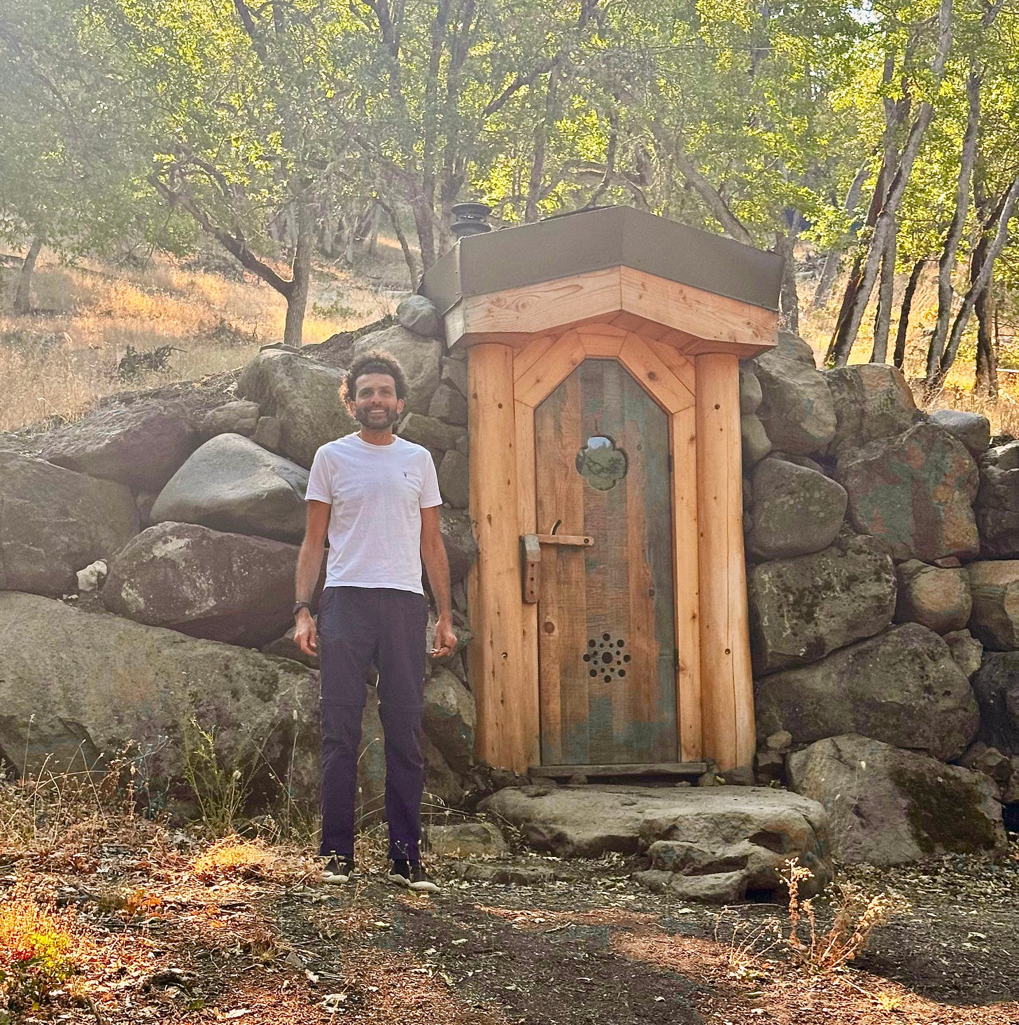 Once inside, Scott flicked on the light and shut the door behind us. I was relieved to find that it felt far more like a room than a cave. Straight ahead was an unexpectedly comfortable bed. To the right, a meditation corner with a lounge chair, a bathtub, and beyond that, a small bathroom. Simple. Thoughtfully arranged. Home for the next few days.